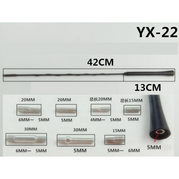 Антенний наконечник (витий) 5мм YX-22 адаптери M6-M6; M5-M6: M4-M5 (довжина 42см,13см)