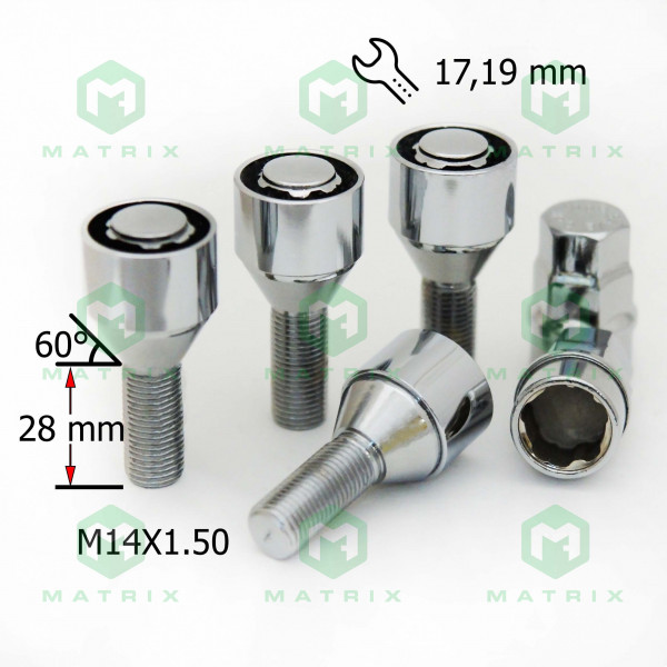 Болт секретний 14х1,5х28 хром конус (оберт. кільце, 2 ключі) (4 шт) (блиск) 374110 X2