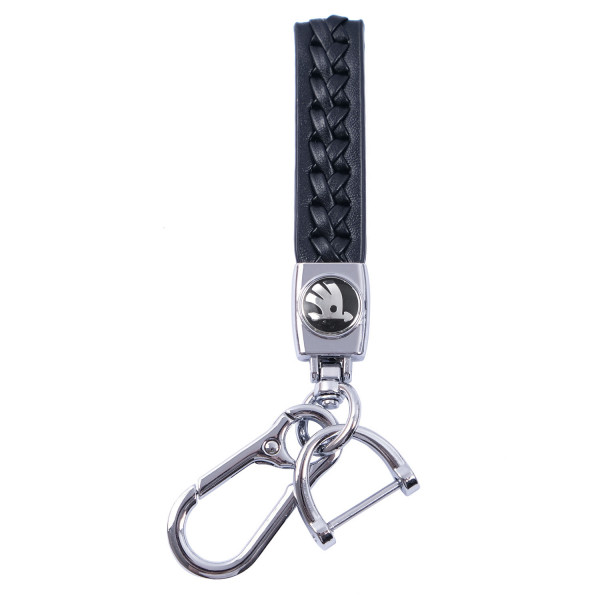 Брелок на ключі Джгут Skoda чорна з Карабіном ХРОМ (пакет+викрутка)