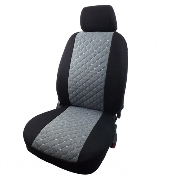 Чохли ''В'' "LUXE MAX" Чорні - Середина Жаккард Сірі (Графіт )(Заднє сид-ня розділене+5-Підголов.в)