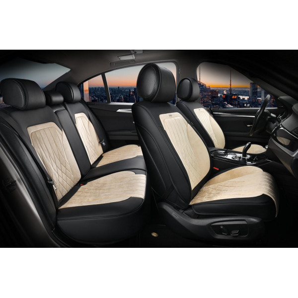 Чохли - Накидки сидіння Алькантара + Шкір. зам 3D "MODENA" (спинка відкрита) Бежеві Elegant-700 134