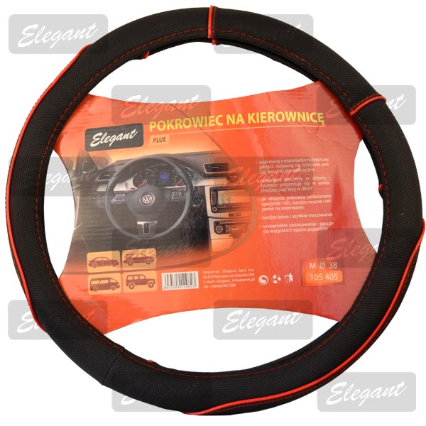 Чохол на кермо "M" (37-38см) чорний/червоний Elegant 105405 (червона нитка)