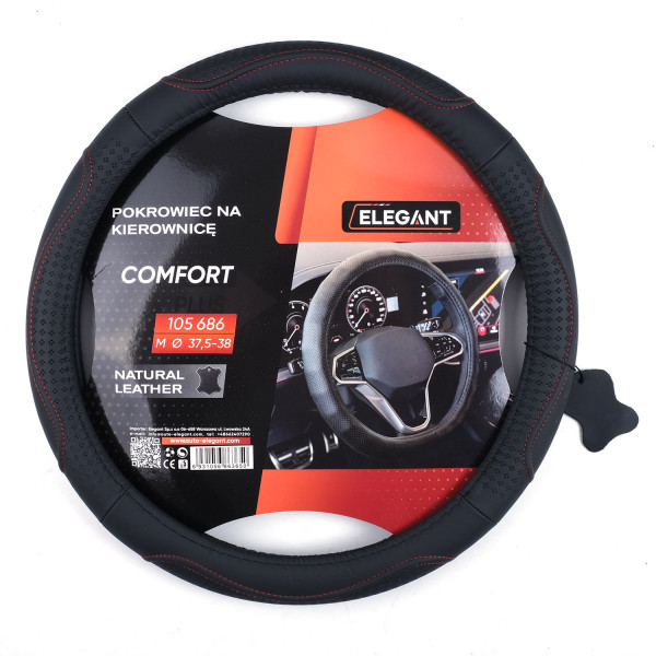 Чохол на кермо шкіра "М" (37-38см) чорний Elegant 105686 прошита червоною ниткою