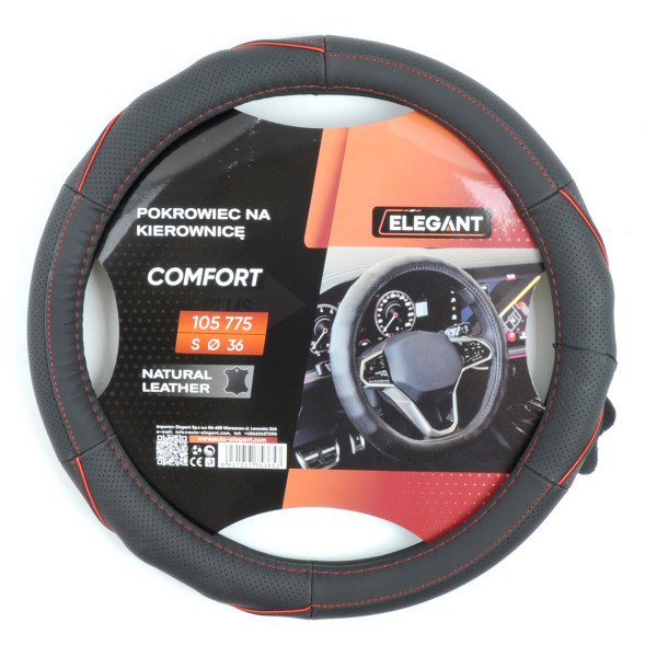 Чохол на кермо шкіра "S" (36см) чорний Elegant 105775 перф,прошит червоною ниткою