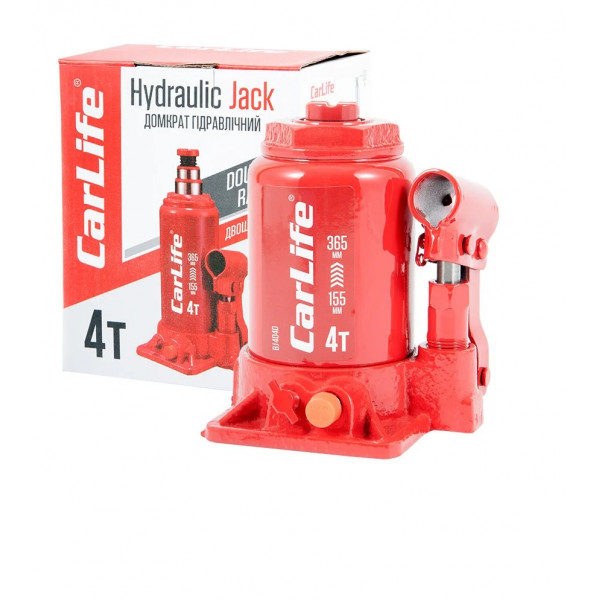 Домкрат гідравлічний 2-х штоковий 4т висота 365/155mm коробка "Carlife" BJ404D