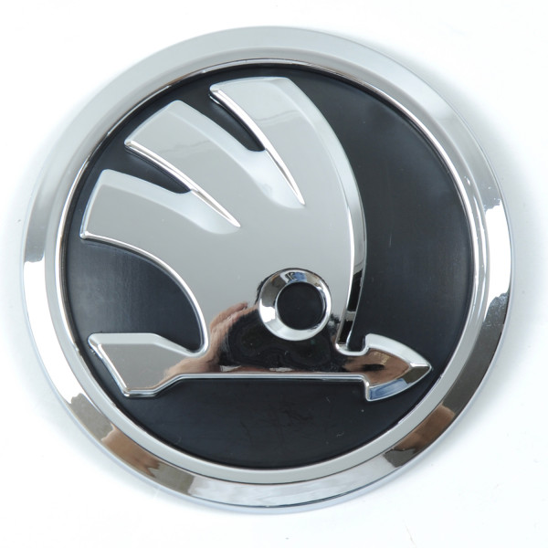 Емблема "Skoda" 89мм пластик 2 пуклі скотч 3М (Fabia 11>15,Rapid 12>15) перед 5J0853621AUL