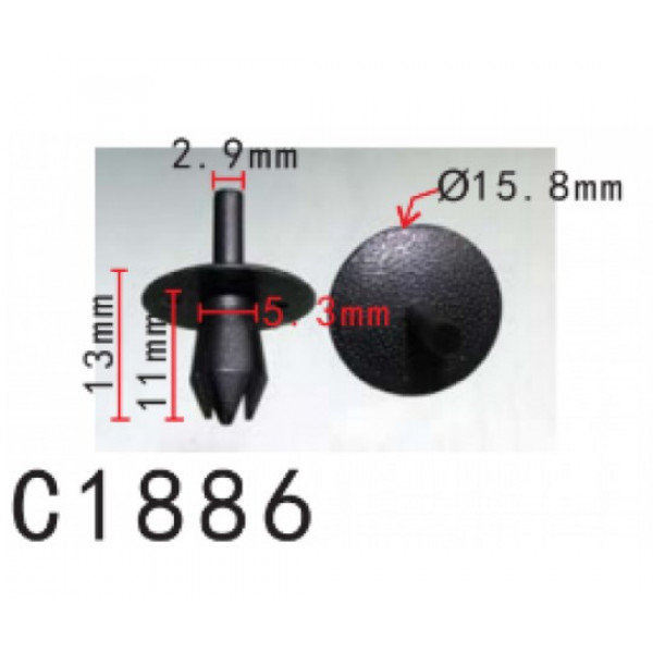 Фіксатор C1886 натискна/розпірна OPEL, RENAULT, PEUGEOT, CITROEN, FORD, VOLVO, AUDI, FIAT ( уп. 100