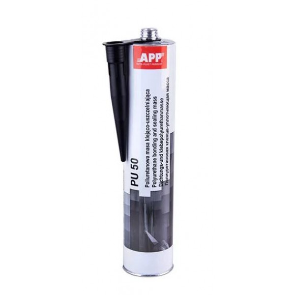 Герметик поліуретановий шовний Чорний 310g "APP PU 50" катридж відкритий 040307 Еластична однокомпонентна поліуретанова клеючі-ущільнююча маса. Під впливом вологи з атмосфери твердне до форми еластомеру. Після повного висихання герметик може покриватися фарбами, які використовуються для ремонту і відновлення автомобільних кузовів. Герметик проявляє відмінну адгезію без спеціального ґрунту до: скла, нержавіючої сталі, анодованому алюмінію, пофарбованим і емальованим поверхонь, матеріалів укріпленим скловолокном, керамічним емальованим і теракотовим плиток. Служить для герметизації зварних з'єднань автомобільних кузовів. Може накладатися у вигляді валика, а потім розподілятися пензлем або шпателем. Герметик призначений для застосування під час фарбувально-кузовних ремонтів на загрунтованих кузовних елементів і поверхнях, покритих ґрунтами і поверхневими фарбами, для застосування в машинобудуванні і суднобудуванні, для промислового використання в будівництві та вентиляції. Спосіб застосування: перед нанесенням PU-50 поверхню висушити, очистити від пилу і знежирити. Наносити при температурі від +5 C до +35 C. Затвердіння герметика починається відразу після накладення і залежить від температури і вологості повітря. Після 6-8 годин герметик можна покривати фарбами в тому числі і водорозчинними.