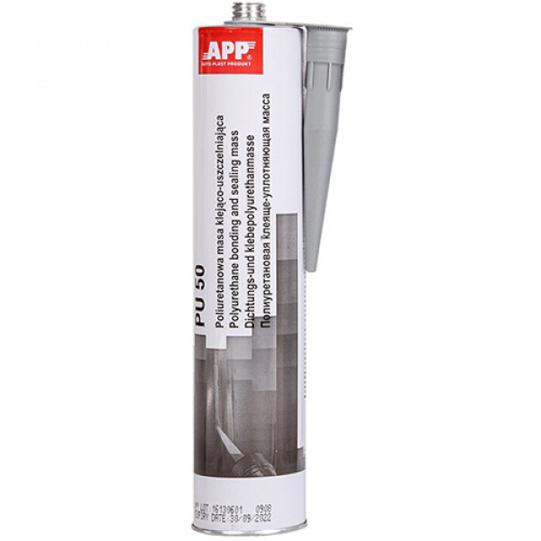 Герметик поліуретановий шовний Сірий 310g "APP PU 50" катридж відкритий 040306 Еластична однокомпонентна поліуретанова клеючі-ущільнююча маса. Під впливом вологи з атмосфери твердне до форми еластомеру. Після повного висихання герметик може покриватися фарбами, які використовуються для ремонту і відновлення автомобільних кузовів. Герметик проявляє відмінну адгезію без спеціального ґрунту до: скла, нержавіючої сталі, анодованому алюмінію, пофарбованим і емальованим поверхонь, матеріалів укріпленим скловолокном, керамічним емальованим і теракотовим плиток. Служить для герметизації зварних з'єднань автомобільних кузовів. Може накладатися у вигляді валика, а потім розподілятися пензлем або шпателем. Герметик призначений для застосування під час фарбувально-кузовних ремонтів на загрунтованих кузовних елементів і поверхнях, покритих ґрунтами і поверхневими фарбами, для застосування в машинобудуванні і суднобудуванні, для промислового використання в будівництві та вентиляції. Спосіб застосування: перед нанесенням PU-50 поверхню висушити, очистити від пилу і знежирити. Наносити при температурі від +5 C до +35 C. Затвердіння герметика починається відразу після накладення і залежить від температури і вологості повітря. Після 6-8 годин герметик можна покривати фарбами в тому числі і водорозчинними.