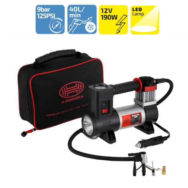 Компресор - Ліхтар-LED - "HEYNER" 237100 - 12v - 190вт - 40л - 7атм - 14А - в сумці