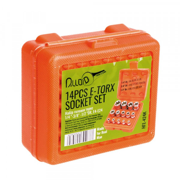 Набір головок Е 14од. 1/4"- 3/8" DR" (E4-E24) ALLOID" (НГЕ-424К) пласт.бокс (10шт/уп)