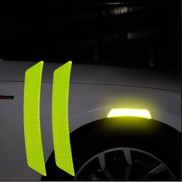 Наклейка відбивач катафот 2шт люмінесцентна на крило автомобіля Жовта "Полоса"