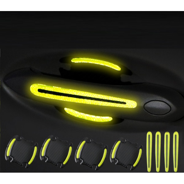 Наклейка відбивач катафот 8шт люмінесцентна на дверні ручки автомобіля Жовта