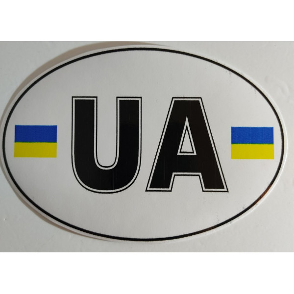 Наліпка "UA" овал чорно/біла з прапорами (140х90) (уп.10шт)
