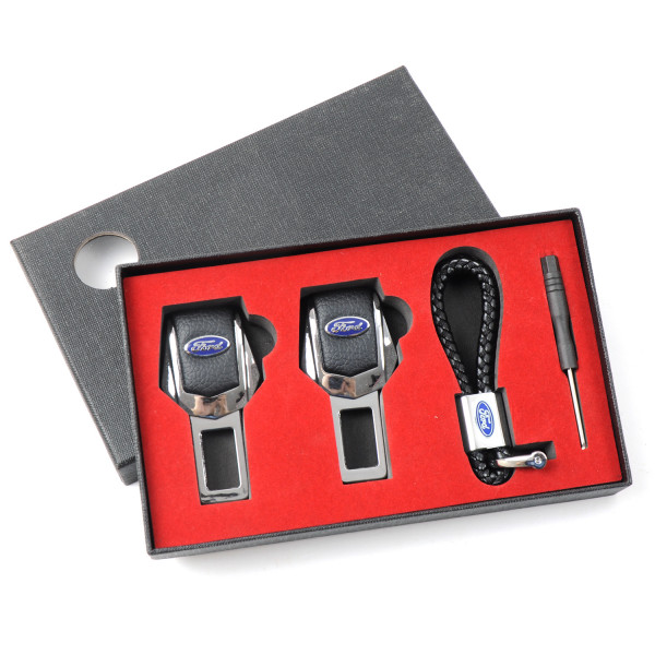 Подарунковий набір FORD 2в1 (фіксатор ременів, плетений брелок) №2