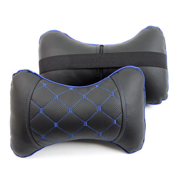 Подушка на підголівник еко-шкіра чорна + вставка перфор./рядок Ромб синій + кант (2шт/к-кт)