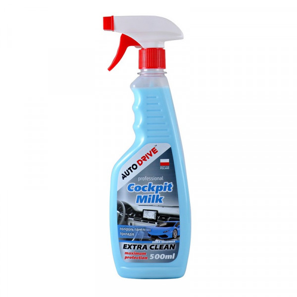 Очисник для приладової панелі транспортного засобу від бренду Auto Drive моделі Cockpit Milk New Car AD0071 500мл необхідний для забезпечення комплексного догляду за панеллю приладів автомобіля, при цьому ефективно усунути різноманітні забруднення, замаскувати дефекти та захистити елементи від налипання пилу та пилу. Виготовляється такий очищувач без шкідливих розчинників або силікону, завдяки чому цей засіб універсально підходить для всіх видів пластмас, включаючи гладкі та текстуровані пластмаси. Достатньо велика упаковка з професійним розпилювачем гарантує користувачу максимальну ефективність засобу, а також тривалий термін експлуатації. Очищувач для пластикових елементів не вимагає попереднього розведення або підготовки поверхні для очищення. Необхідно лише нанести невелику кількість засобу на поверхню деталі та відполірувати серветкою з мікрофібри. Переваги та особливості очищувача: Має миючі властивості, а також легко та ефективно усуває різні забруднення, такі як пил, жирні плями, тютюновий наліт та інші. Відновлює колір пластику, надає привабливого вигляду. Маскує невеликі подряпини та потертості, поверхня стає гладкою. Перешкоджає налипання пилу у майбутньому.