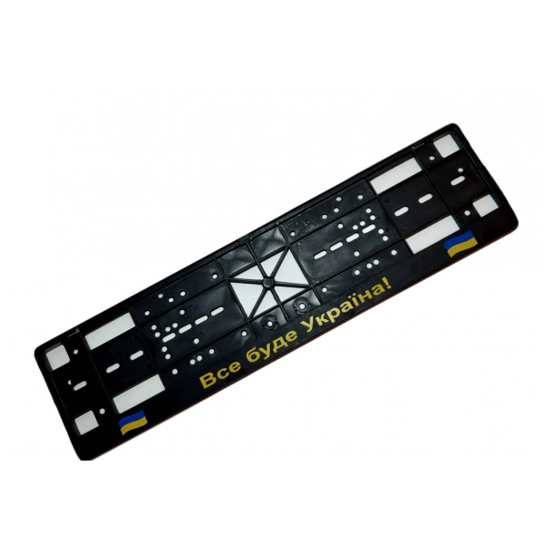 Рамка номера "защіпка" Чорний напис - "Все буде Україна" Чорний №20