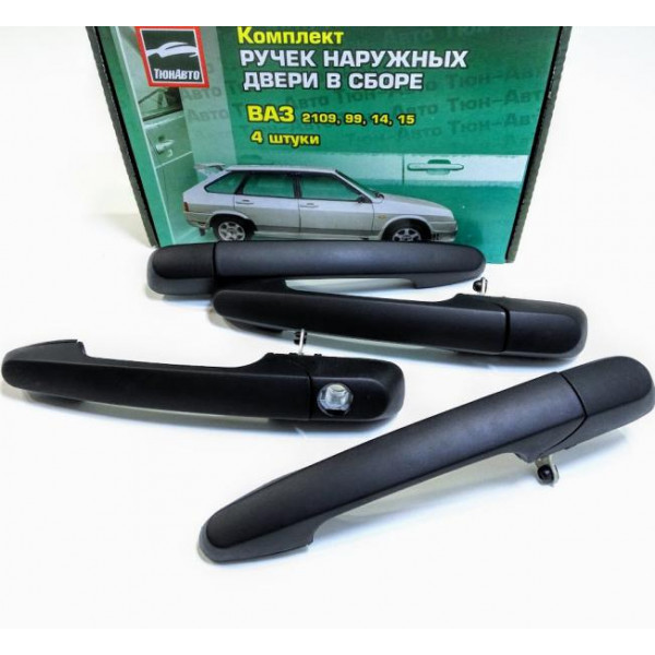 Ручки двері зовнішні в зборі 2109,2199,2114,2115 чорні,пластик "ТЮН-АВТО"(4шт) під один замок