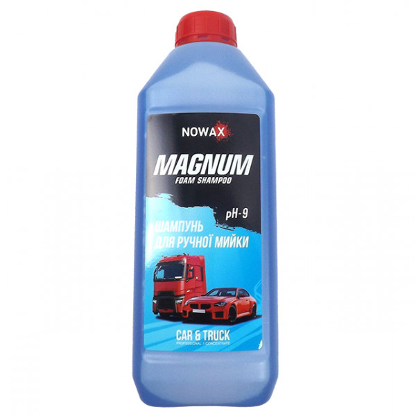 Шампунь "Nowax" Magnum Foam Shampoo NX01162 1л. Автошампунь суперконцентрат преміум класу для ручного миття автомобіля з високим рівнем піноутворення. Рясна стійка піна, яка залишається на поверхні тривалий час, ефективно очищає лакофарбове покриття автомобіля від бруду, сажі, масляних плям, солі та інших важких експлуатаційних забруднень. Не завдає шкоди алюмінієвим, хромованим, гумовим та іншим поверхням автомобіля. Завдяки особливим компонентам добре працює з твердою водою і в зимовий період року. Не впливає на шкіру рук. Спосіб застосування: Приготувати розчин. Для пінокомплекту - розбавити з водою в пропорції від 1:12 до 1:10. Нанести робочий розчин на автомобіль за допомогою пінокомплекту і залишити на 1-2 хвилини для активації піни. Стерти піну з автомобіля за допомогою м'якої губки. Залишки робочого розчину змити струменем води під високим тиском. Для ручного миття - розбавити з водою у пропорції 1:500 (20г шампуню на 10л води). Нанести робочий розчин на автомобіль за допомогою губки. Змити залишки піни чистою водою. Попередження: При попаданні у вічі промити великою кількістю води. Бережіть від дітей!