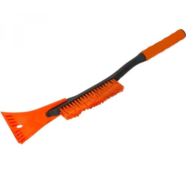Комбинированная щетка со скребком, предназначенная для быстрой и легкой очистки кузова и стекол автомобиля от снега и льда. Щетка обладает распушенным мягким ворсом, который эффективно и деликатно очищает гладкие поверхности автомобиля от снега, не повреждая при этом лакокрасочный слой кузова, а скребок, выполненный из прочного пластика, легко и быстро удалит наледь с поверхностей зеркал и стекол. Наконечник скребка имеет особую, скошенную форму, которая позволяет аккуратно поддевать и устранять слой льда, не нанося повреждений в виде царапин. Ручка обладает специальными поролоновыми вставками, которые обеспечивают комфортное удержание и предотвращает случайное выпадение щетки во время очистки. Благодаря компактным размерам щетку можно хранить в багажнике даже самых небольших автомобилей и использовать при первой необходимости.Преимущества:Густой и распушенный ворс щетки быстро и легко удаляет снег с кузова.Имеет специальный скребок на ручке для очистки стекол и зеркал от наледи.Не наносит повреждений в виде царапин во время очистки.Ручка 52см позволяет без труда удалять снег с крыши автомобиля.Поролоновая вставка предотвращает выпадение инструмента из рук.