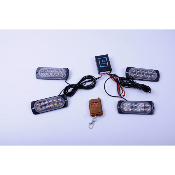 Страбоскоп світлодіодний 12-24V 12LED*4 шт, пульт 12 режимів (червоно-синій) BS-1-4-12LED (R+B)