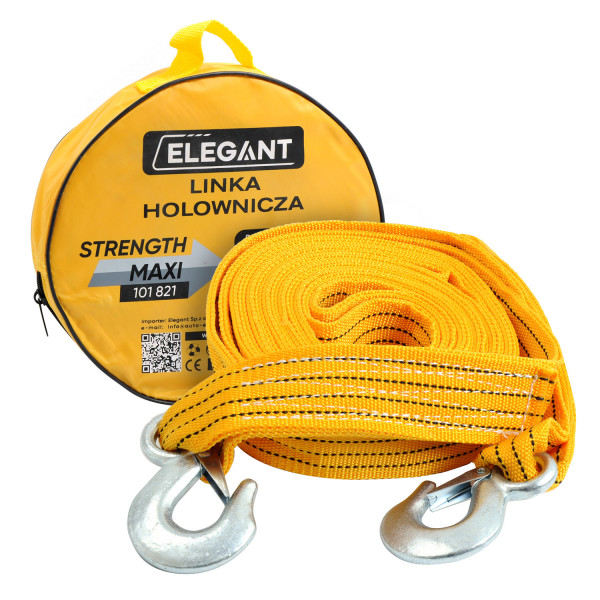 Трос буксирувальний з гаками Elegant Maxi 101 821 Технічні параметри: Довжина: 6 м Вантажопідйомність: 6 т Ширина: 50 мм Колір: помаранчевий Вага брутто: 1,5 кг Габарити і тип упаковки: 240/240/60 мм, сумка Виробник: Elegant Країна: Польща Буксирувальний трос - постійний мешканець багажника більшості автомобілістів. Так склалося, що кліматичні умови і якість доріг України все частіше змушують до використання буксирувального тросу. То взимку снігом занесе і без сторонньої допомоги із замету НЕ вилізти, то сильний дощ застане Вас на дорозі, де й натяку на асфальтне покриття немає. Звідси і виникає необхідність постійно тримати буксирувальний трос "під рукою". Тому для автомобіля, який не має можливості пересуватися самостійно, найпростіший спосіб - це відбуксирувати його за допомогою іншого транспортного засобу. Буксирувальний трос має достатню для буксира довжину і рівень міцності.