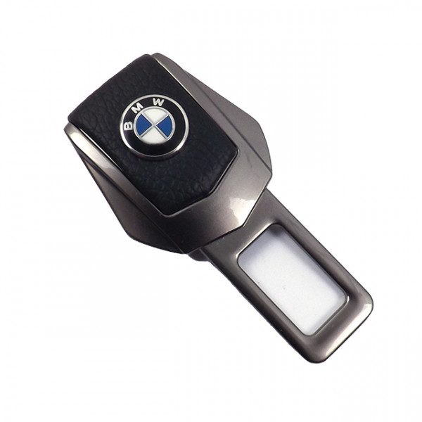 Заглушка ременя безпеки метал "BMW" (1шт) цинк.сплав + шкіра (тип №2) ГРАФІТ