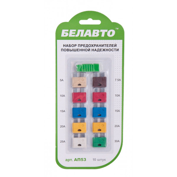 Запобіжники стандарт від 5-30А (10шт) з пінцетом "Белавто" AP-53 (200шт/ящ)