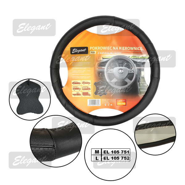 Опис: Чохол має ексклюзивний дизайн, який додає нотку стилю інтер'єру вашого автомобіля. Виготовлений із дихаючої натуральної шкіри, цей чохол зберігає ваші руки в прохолоді та комфорті під час водіння. Характеристики: Виробник: Elegant Матеріал: натуральна шкіра Колір: чорний, сірий, чорно-червона лінія, чорна синя лінія, винно-червоний, бежевий Функція: повітропроникність, збереження сухості, захист від ковзання, розкішний ергономічний дизайн, можна використовувати чотири сезони. Вибір діаметра: Підтримка: від 14,1" (36 см) до 20" (54 см). Розміри підходять для 99% автомобілів.