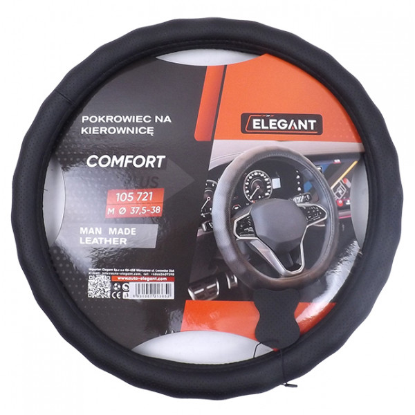 Чохол на кермо шкіра "М" (37-38см) чорний Elegant 105721 тиснення перфорація /масаж.1шов Еко- шкіра