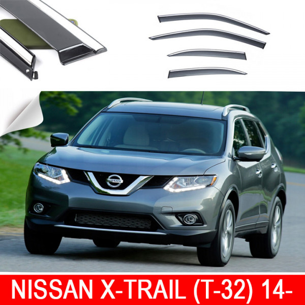 Дефлектори вікон Nissan X-Trail (T-32) 14- П/К скотч "FLY" "нерж.сталь 3D "BNSXT1423-W/S(10-16)