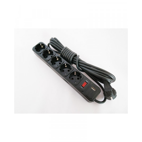 Фильтр компьютерный КРЕТ черный 4,5 м, 5 розеток USB