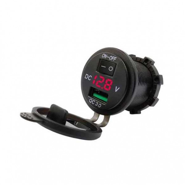 Врезной вольтметр с USB портом быстрой зарядки (Quick Charge 3,0) и кнопкой вкл/выкл вольтметра и USB порта при подключении напрямую от АКБ или ночью, для удобства. Разъем отлично подойдет для модернизации, как мото- и авто техники, так и для апгрейда водного транспорта: катера, лодки с напряжением бортовой сети 12В-24В. Чтобы избежать возможного контакта с водой и/или большим количеством пыли, достаточно закрыть защитную крышку, сделав устройство герметичным. Корпус изготовлен из высококачественного АБС пластика и металла, что положительно сказывается на его запасе прочности и устойчивости к повреждениям. Солнце, физическое воздействие, влага, пыль - разъем легко выдержит любые воздействия. Монтаж происходит путем врезки (необходимо сделать отверстие, равное диаметру резьбы прибора), подключения устройства к электропроводке, с последующей фиксацией в любом удобном месте с помощью зажима-закрутки.Установить розетку можно вместо штатного прикуривателя