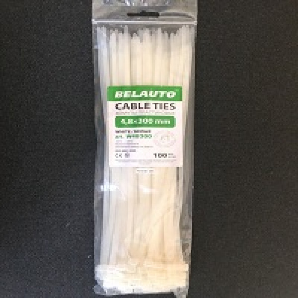 Хомут пласт.білий 300*4,8 "Білавто" (100 ШТ)