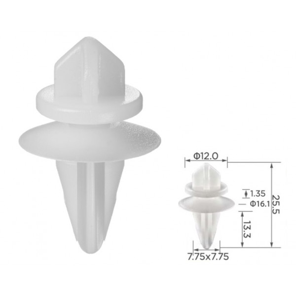 Клипса Mitsubishi MB846992 T=12.0, D=8.0*8.0, H=25.3, F=7.7*7.7 Применение: Молдинг двери Для моделей: Mitsubishi Montero (2000 - 2006) Mitsubishi Pajero (1999 - 2006)