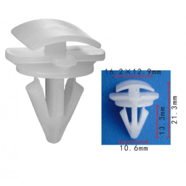 D=16.2*12.9, T=17.8, H=21.3, F=10.6 ОЕМ: 3C0853585, 3C9827407, 3C9827408, 15160 Используется для крепления молдинга порога Может комплектоваться втулкой C1973 Skoda Yeti (2010-2014) VW Scirocco III (2008-) New Beetle (1997-2010) Passat B6 (2005-2010) Sharan (2010-2015) Tiguan (2007-2011) Touareg II (2010-2014) Touareg II (2014-2018) Passat B8 (2015- ) Seat Alhambra (2010-2015) Audi RS5 (2010- )