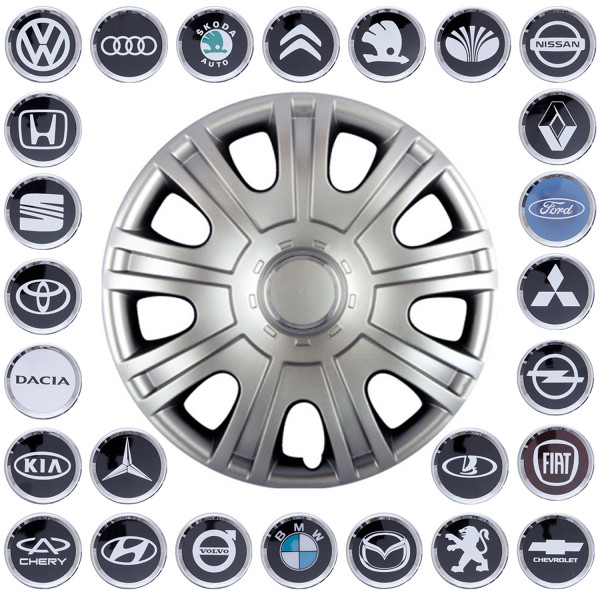 В комплект входит 4 колпака и эмблемы вашего автомобиля. Эмблема надёжно крепится хромированным кольцом в центральной части колпака. Комплект колесных колпаков предназначен для установки на диски. Сделаны из высококачественного пластика. Колпаки на колеса авто предназначены для защиты колес и как декоративный элемент колес. Функция защиты колес необходима зимой, потому что колпаки смогут защитить колеса от снега, слякоти, соли и других сопутствующих этому периоду смесей. Можно купить колесный колпак вместе с эмблемой Вашего авто. Эмблема не клеится на колпак, а крепится к нему хромированной пластиной.