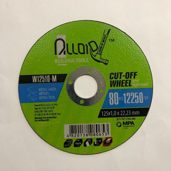 Круг відрізний 125х1,0х22,2 по металу "Vitol" (25) W12510-M