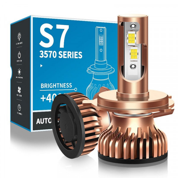 Світлодіодні LED лампи S7 H4 55W 9600Lm 6000-6500K CANBUS LED 3570 чіпи останнього покоління спеціально розроблені для використання у світлодіодних лампах головного світла; Освітлення +400% (в порівнянні з галогеновими лампами); Широкий та щільний світловий потік 6000К як в рефлекторній, так і в лінзованій оптиці; Стартова потужність 55 Вт, робоча 50 Вт; Високоефективна система охолодження з використанням вентилятора та радіатора; Зовнішній драйвер виконано в металевому корпусі; Розширений температурний режим роботи від -40 до + 95 С; Номінальна напруга 12-24 В. Комплект: 2 шт