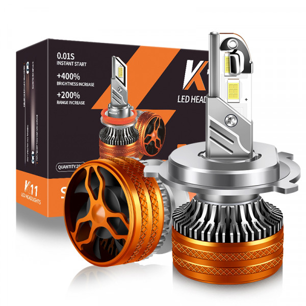 Світлодіодні LED лампи K11 H4 80W 13000Lm 6000-6500K CANBUS LED 3570 чіпи останнього покоління спеціально розроблені для використання у світлодіодних лампах головного світла; Освітлення +400% (в порівнянні з галогеновими лампами); Широкий та щільний світловий потік 6000К як в рефлекторній, так і в лінзованій оптиці; Стартова потужність 45 Вт, робоча 40 Вт; Високоефективна система охолодження з використанням 1ої теплової трубки,мідної пластини,вентилятора та радіатора; Зовнішній драйвер виконано в металевому корпусі; Вбудований модуль СANBUS для обходу помилки бортового комп'ютера; Модуль EMC - відсутність електромагнітних поміх; Інтелектуальна система термоконтроля; Розширений температурний режим роботи від -40 до + 95 С; Номінальна напруга 9-16 В. Комплект: 2 штуки