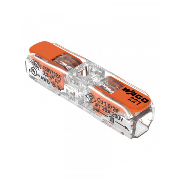 Соединитель с рычагами серии WAGO 221 впечатляет своей инновационной конструкцией для проводов различного сечения. Именно поэтому соединитель с рычагами WAGO является уникальной торговой маркой в области технологий электрических соединений. Плоские рычаги, которые легко входят в основание соединителя 221, действуют как литая деталь в закрытом состоянии и могут быть аккуратно размещены в любом корпусе, не повреждая края. Благодаря широкой конструкции каждого рычага, все они могут быть легко установлены без инструментов, обеспечивая удобное подключение проводников. Прозрачный корпус демонстрирует прочную технологию и позволяет немедленно визуально контролировать правильность контакта одножильных, многожильных и тонкожильных проводников. Напоминающий клавиши пианино дизайн рычагов идеально сочетает в себе функциональную и эстетическую технологию соединения «Made by WAGO».