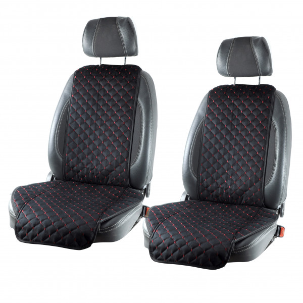 Накидки сидінь "Алькантара" "DEKOR" Чорна - Червона нитка стьобані ромби на флісі (1+1) Передні