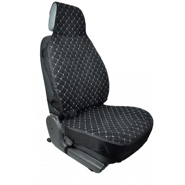 Накидки сидінь "Алькантара" "LUX PILOT" Чорна - Сіра нитка стьобані ромби (1+1) Передні Закрит