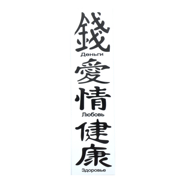 Наліпка "Ієрогліфи" чорні малі (3шт) 24х6см (Гроші, Кохання, Здоров'я)