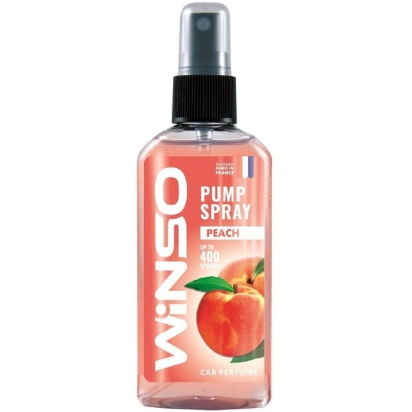 Освіжувач спрей 75ml - "Winso" - Pump Spray - Peach (Персик) 531400 Опис: Освіжувач Peach 531400 наповнить салон автомобіля багатогранним, ненабридаючим для нюху ароматом. Серія ароматів Pump Spray пропонує свіжі відтінки для активного способу життя і денної їзди. Створіть новий природний і звичний запах салону з відповідними аромату приємними асоціаціями. Крім ароматизації, засоби серії ефективно нейтралізують неприємний запах. Керуйте насиченістю аромату в салоні завдяки ручному розпорошенню. Ароматизатор має рідку консистенцію і розпорошується за допомогою спрею. Зручна і компактна форма 75 мл флакону дозволяє зручно зберігати його в бічній ніші дверей. Завдяки високій концентрації засобу, вистачить його на тривалий строк. Для разової зміни ароматичної обстановки в салоні розпорошується в повітря. Для більш ґрунтовного просочення і подальшої пасивної ароматизації засіб можна розпорошити на оббивку салону. Регулювати інтенсивність розпилення зручно, натискна гойдалка максимально м'яка, що вбереже від плями концентрату ароматизатора, зосередженого в одній точці оббивки. Аерозольне рішення зручне в разі звикання до ароматизатору і подальшої зниженою чутливості до нього. У таких випадках слід ненадовго відпочити від запаху, щоб через кілька днів відчути приємний аромат як в перший раз.