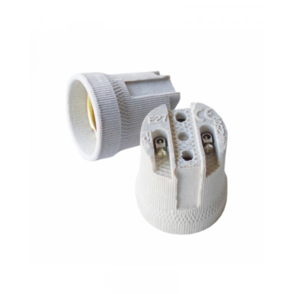 Керамические патроны имеют меньший ассортимент и не включают в себя «люстровые» модели с наружной резьбой и гайкой. Керамика также может быть использована с любыми лампами, также температура лампы не в коей мере не влияет на его работу.