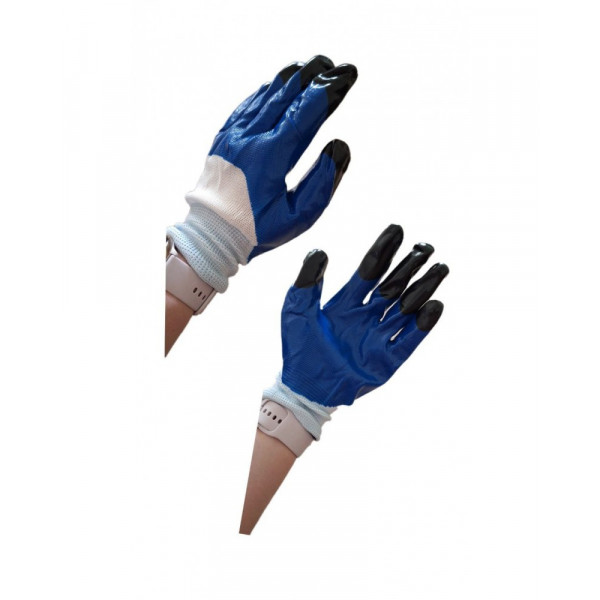 Перчатки покрытые синим нитрилом, усиленные черные пальцы