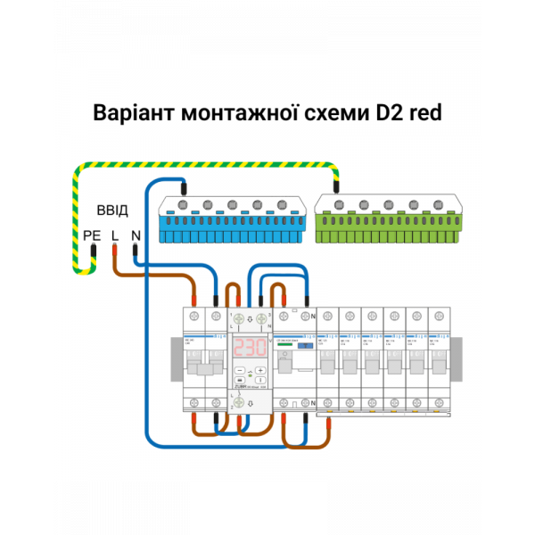 Реле напряжения ZUBR D2 red очень компактный, занимает 2 стандартных модуля в распределительном щите. Его монтаж происходит в распределительный щиток на стандартную DIN-рейку шириной 36 мм. Если в помещении повышенная влажность или существует вероятность попадания воды на устройство, тогда щиток должен отвечать классу защиты IP55 (согласно ГОСТ 14254).