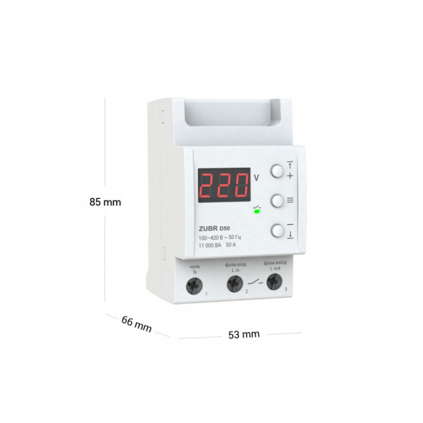 Управление устройством происходит всего лишь тремя кнопками. Цифровой экран отображает значение напряжения и системную информацию. Он помогает легко установить верхний и нижний предел допустимого напряжения, а также упрощает навигацию в меню.